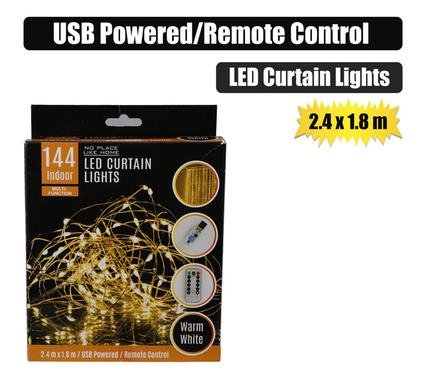 Light led 144 curtain usb w/remote